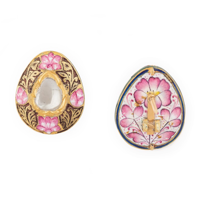 Made in 18 K Gold Gold (18 K) : 8.617 gms Diamond Polki : 0.74 carat Dimensions (inch) : 0.94 (L) ; 0.76 (W)