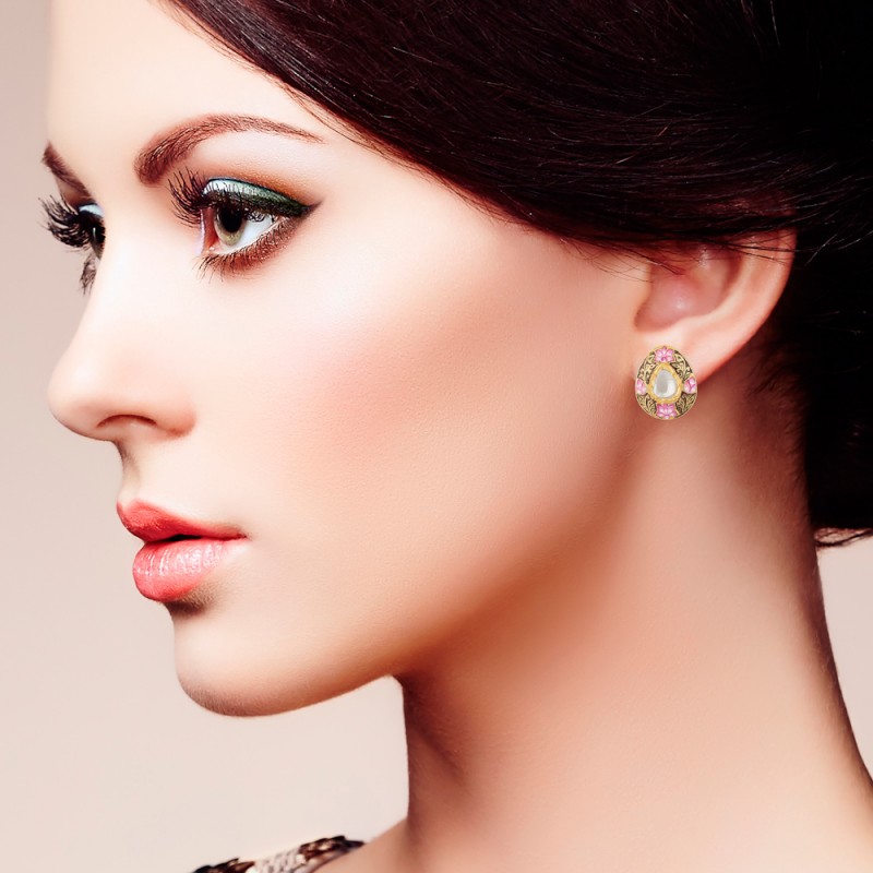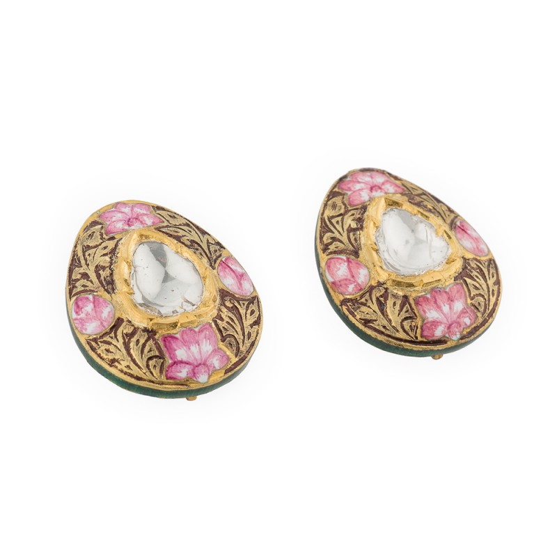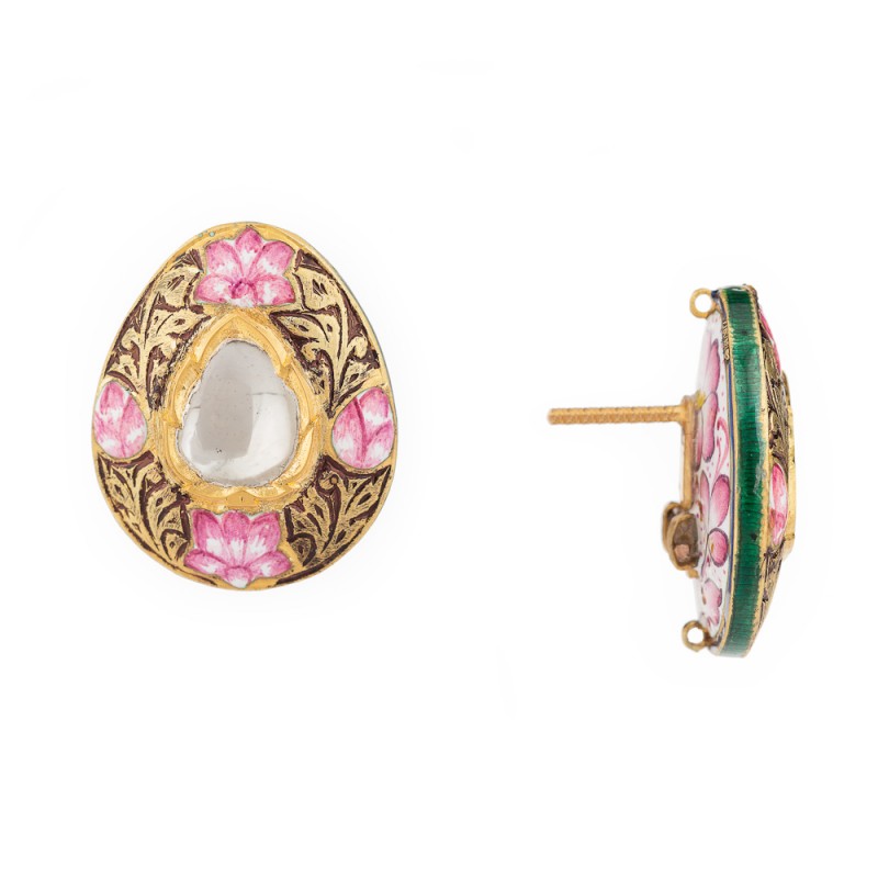 Earring in yellow gold with untreated Syndicate Polki and Pea..